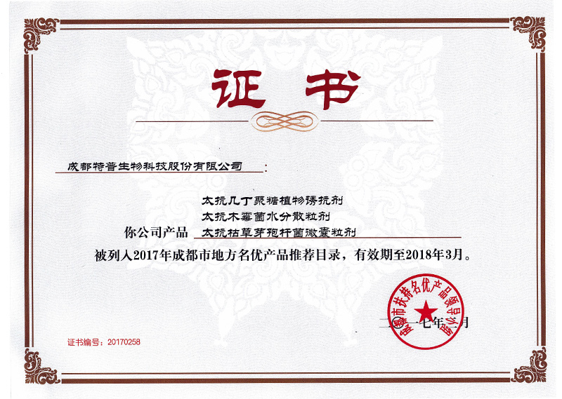 2017成都市名優(yōu)產(chǎn)品證書 2017成都市名優(yōu)產(chǎn)品證書