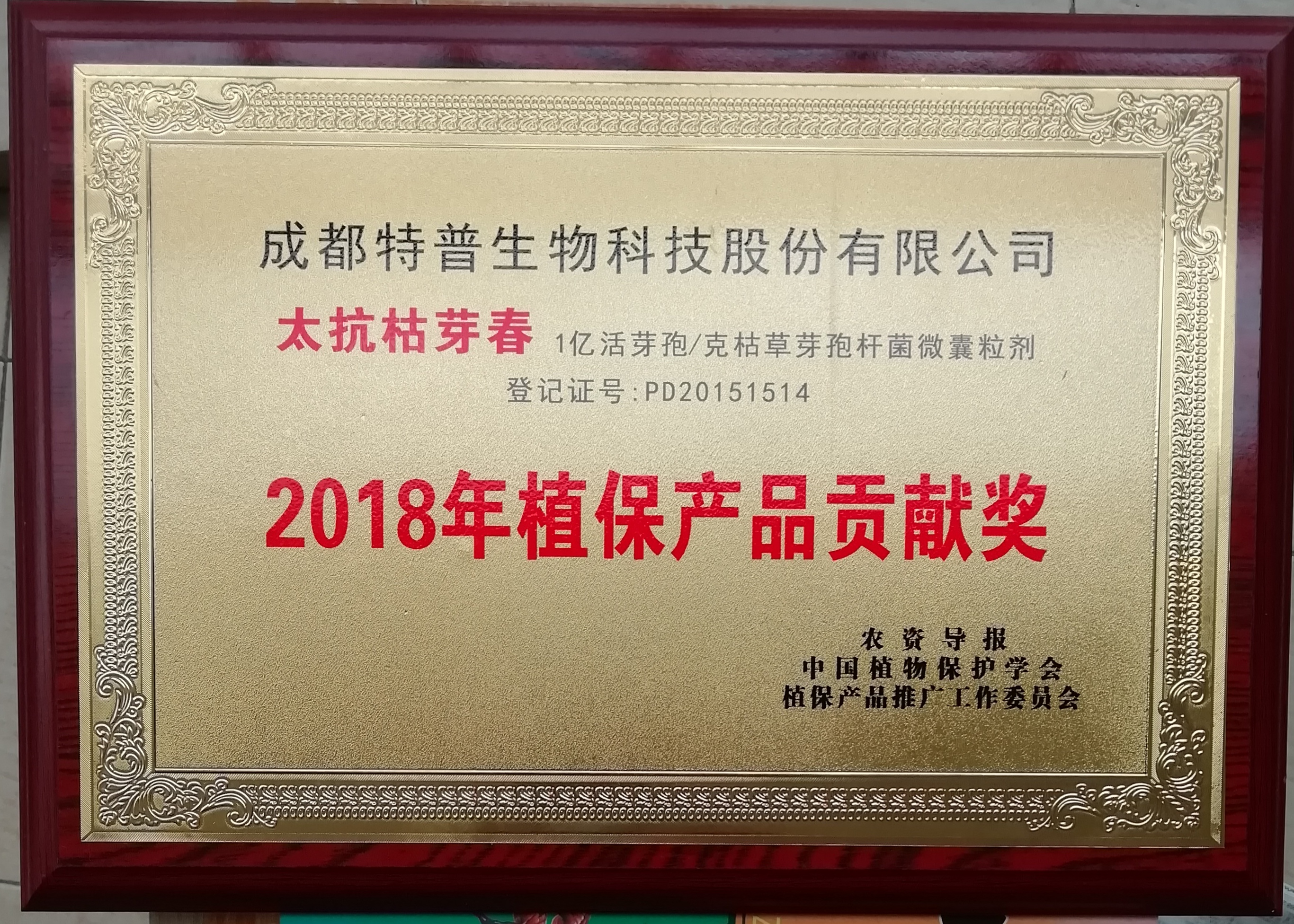 2018年植保產(chǎn)品貢獻(xiàn)獎(jiǎng)——枯芽春 2018年植保產(chǎn)品貢獻(xiàn)獎(jiǎng)——枯芽春