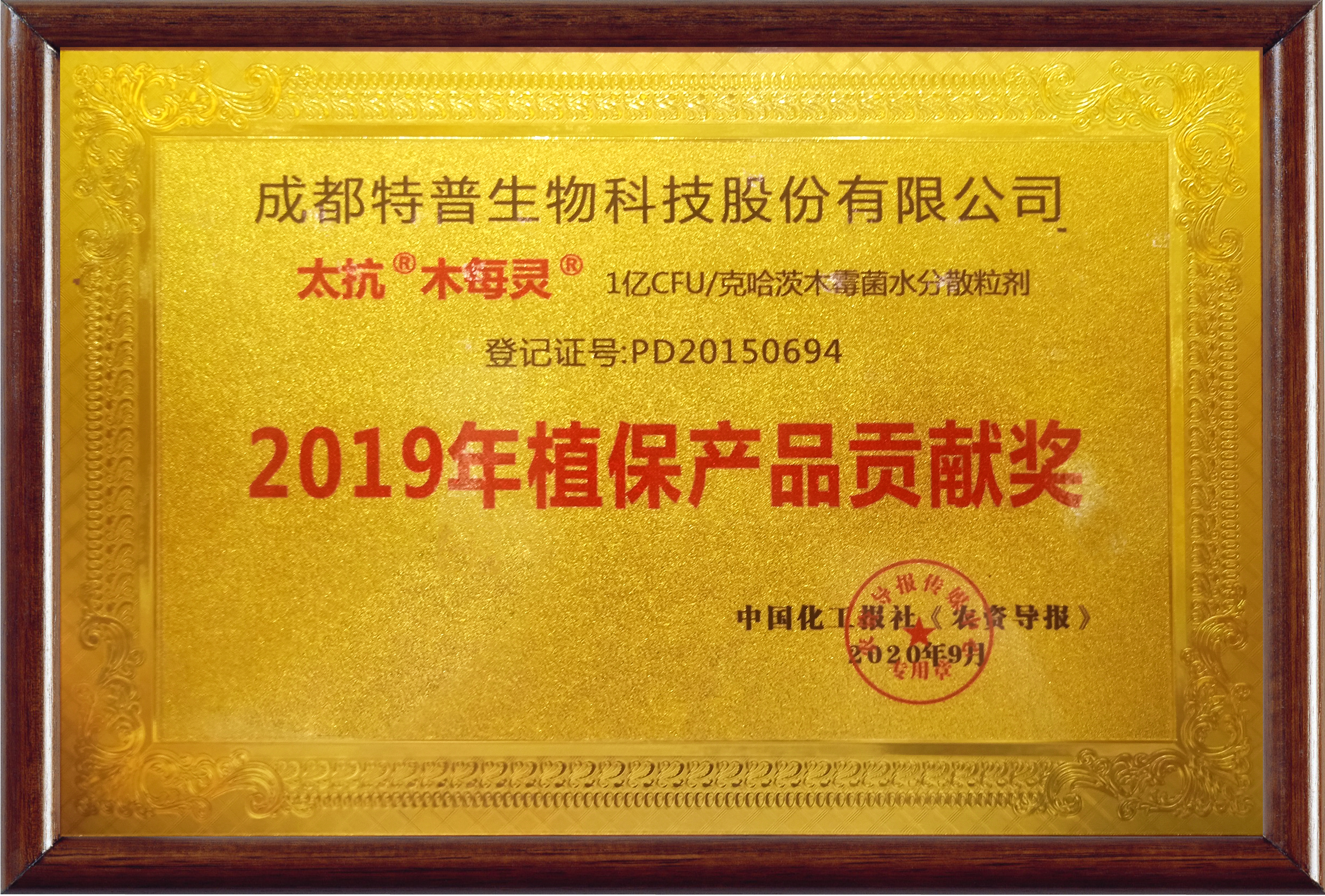 2019年植保產(chǎn)品貢獻(xiàn)獎(jiǎng)—木每靈 2019年植保產(chǎn)品貢獻(xiàn)獎(jiǎng)—木每靈