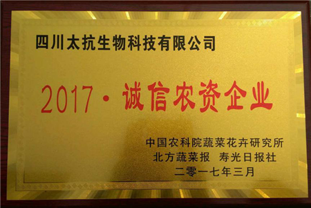 乘著315國際消費者權(quán)益日之東風,借力第十八屆中國(壽光)國際蔬菜科技博覽會開幕在即之勢,2017年3月18日上午,由壽光日報社、北方蔬菜報主辦,中國農(nóng)科院蔬菜花卉研究所協(xié)辦的“第七屆春季百萬農(nóng)資惠農(nóng)展暨品牌農(nóng)資頒獎典禮”在中國(壽光)國際會展中心隆重舉行,太抗生物在頒獎典禮上榮獲“2017·誠信農(nóng)資企業(yè)”獎。