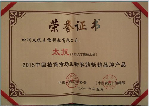 此次發(fā)布會(huì)上,中國(guó)農(nóng)藥工業(yè)協(xié)會(huì)在此次發(fā)布會(huì)上首次隆重公布了2015中國(guó)植保市場(chǎng)生物農(nóng)藥暢銷(xiāo)品牌產(chǎn)品,太抗——榮獲“2015中國(guó)植保市場(chǎng)生物農(nóng)藥暢銷(xiāo)品牌產(chǎn)品”稱(chēng)號(hào)之一。